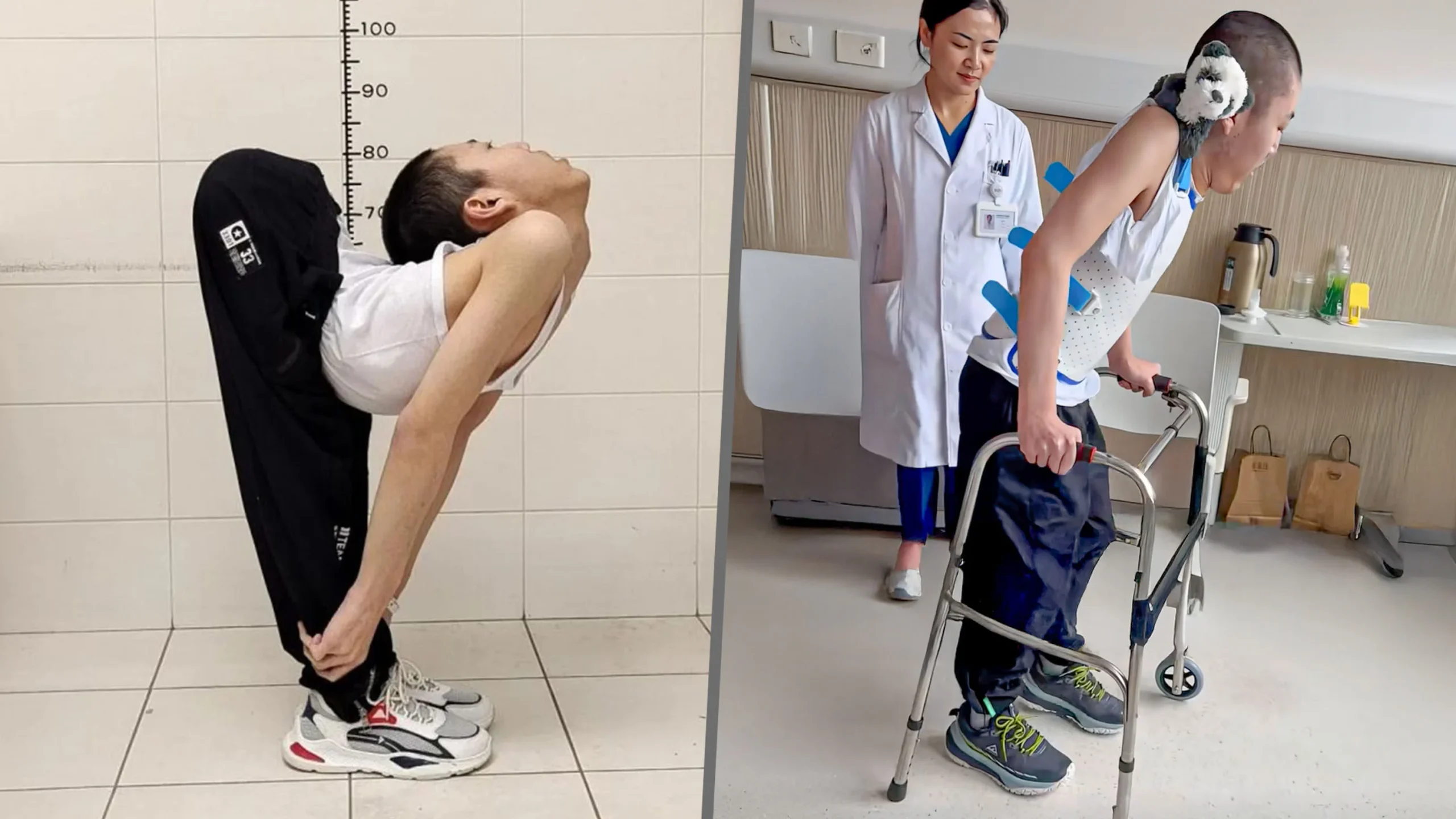 In a world where every movement can feel like a battle, the story of Jiang Yanchen, known as “the folded boy”, stands as a powerful testament to human resilience. Born with ankylosing spondylitis, a rare condition that fused and curved his spine forward, Jiang spent his childhood and adolescence living in a body that folded completely in on itself. For nineteen years, he could neither stand upright nor look into another person’s eyes. Yet after four complex, high-risk surgeries, Jiang achieved what once seemed unimaginable: he stood tall for the first time in his life.