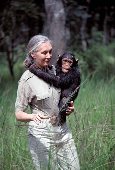 “Chimpanzees use more different objects as tools than any creature except ourselves”, she explained. “They use sticks for feeding, crumpled leaves for drinking water, even stones and branches as weapons.”